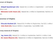 Campaign finance reports (September for Governor, Lt. Governor, Attorney General and House of Delegates; 3Q25 for federal candidates) are coming in now. See VPAP,...