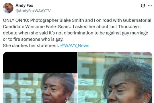 NEW AD: Winsome Earle-Sears Says Firing Virginians for Being Gay, Opposing Same-Sex Marriage Is “Not Discrimination”