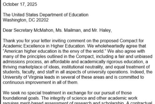 BREAKING: University of Virginia Rejects Trump’s “Compact”; Says It Would “undermine the integrity of...