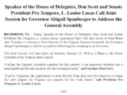 From Speaker Don Scott and Senate President Pro Tempore Louise Lucas: "they will take action at Joint Rules next Tuesday to convene a Joint...