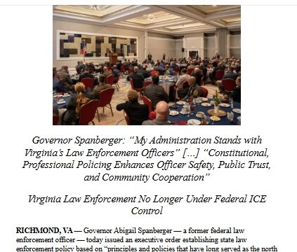 Gov. Abigail Spanberger: “Virginia law enforcement does not engage in fear-based policing,” Is “No...