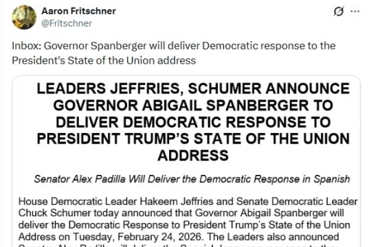 Leaders Jeffries, Schumer Announce Gov. Abigail Spanberger Will Deliver the Democratic Response to Trump’s...