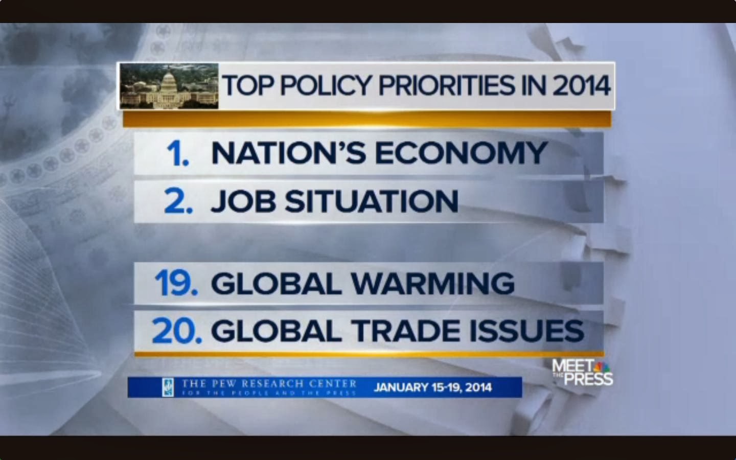 On Sunday’s edition of Meet The Press, host David Gregory put up this graphic of a Pew poll to question whether climate action should be a top priority in Washington.
