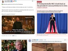 ![Christmas Day News: Zelensky’s Christmas Wish (“May [Putin] Perish”); “Is Trump mentally OK? A look back at the president’s unusual behavior in 2025”; “Trump Fires Off Unhinged Merry Christmas Message to ‘Scum’” While Biden Wishes “peaceful and joyful Christmas Eve filled with love”](https://bluevirginia.us/wp-content/uploads/2025/12/montagechristmas0225-238x178.jpg)