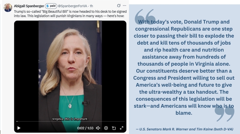 Virginia Democrats Blast House Passage of Trump’s “One Big Ugly Bill”; “cruel and immoral tax and budget scheme that prioritizes billionaires over working people”