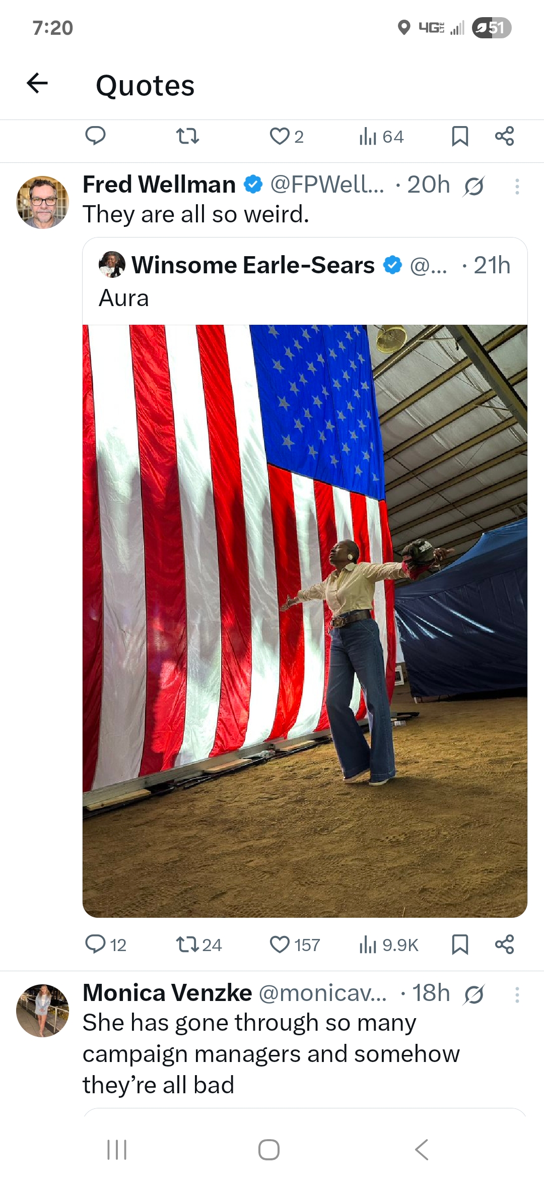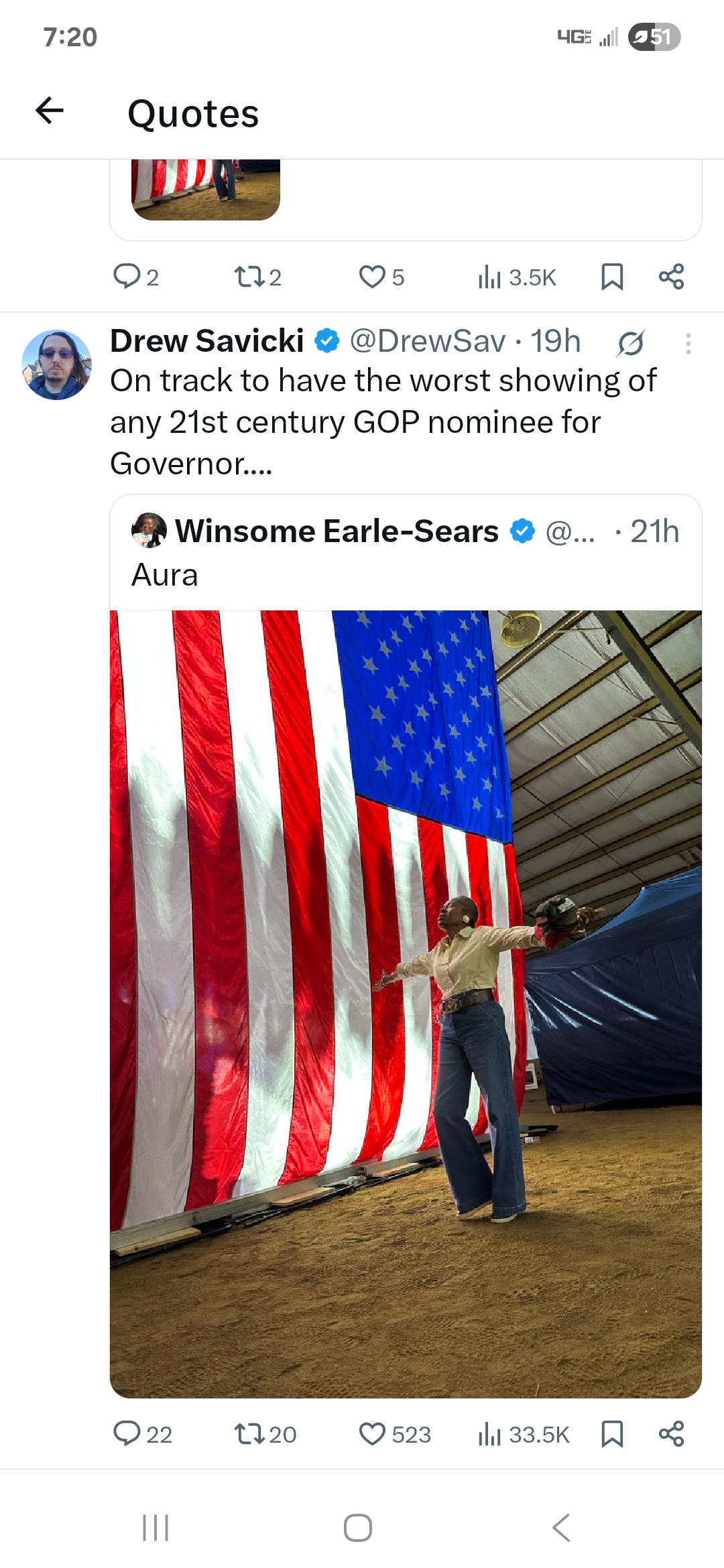 Sick burn of far-right-Republican gubernatorial nominee Winsome Earle-Sears – but a VERY well-deserved burn! – by Sen. Ruben Gallego. Earle-Sears thinks she has an “aura?” Seriously??? Don’t think so. In contrast, Ruben Gallego’s right: what Winsome Earle-Sears actually has is more the “aura of a losing candidate.” Also, as Gallego points out – and he knows this very well from personal experience, having defeated Kari Lake for US Senate last November – that the Virginia GOP “really found the Kari Lake of Virginia.”