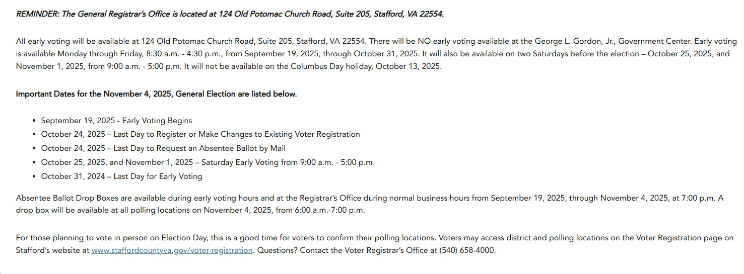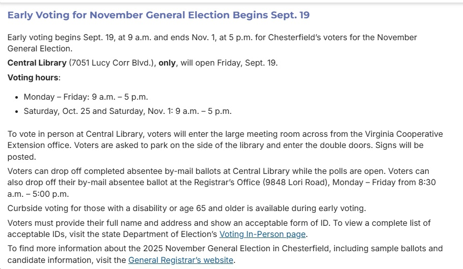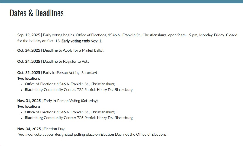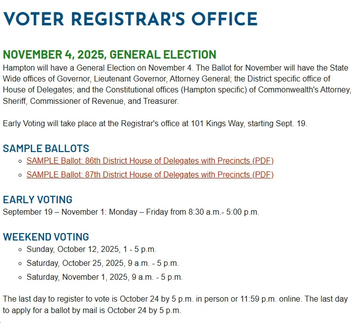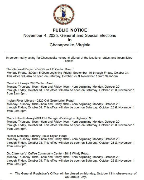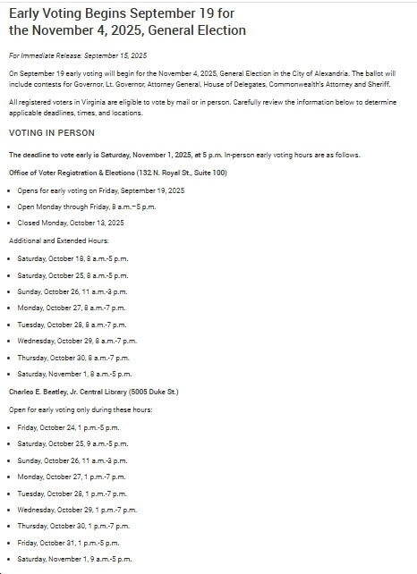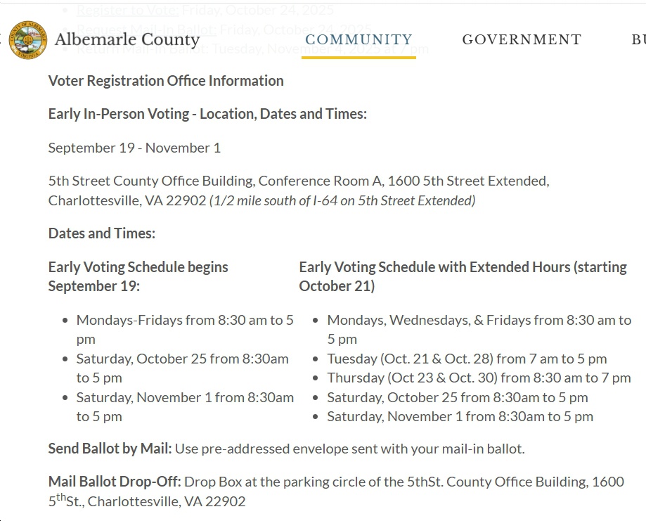 With just 23 days until election day on November 4, early voting is going strong, with over 500,000 early votes cast so far (according to this model, we’re currently at Democratic 56.5% / Republican 39.1%), and with extended hours/satellite voting locations starting in about a week in many major “blue” and “purple” jurisdictions. See below for a few…and make sure you vote BLUE either early in-person, early by-mail or on November 4 at your regular polling location!