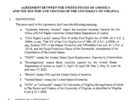 - BREAKING: UVA Interim President Paul Mahoney Announces, “This afternoon, I signed an agreement with the federal government that suspends the five remaining Department of Justice investigations into the University.” (Says agreement “does not require the University to make any monetary payments,” “preserves the academic freedom of our faculty, students, and staff,” “does not involve external monitoring.”)