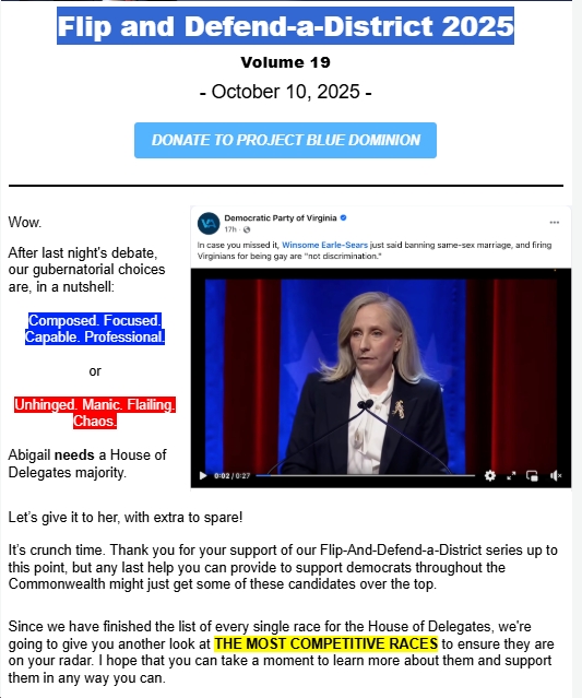 Also, "another look at THE MOST COMPETITIVE [House of Delegates] RACES to ensure they are on your radar."