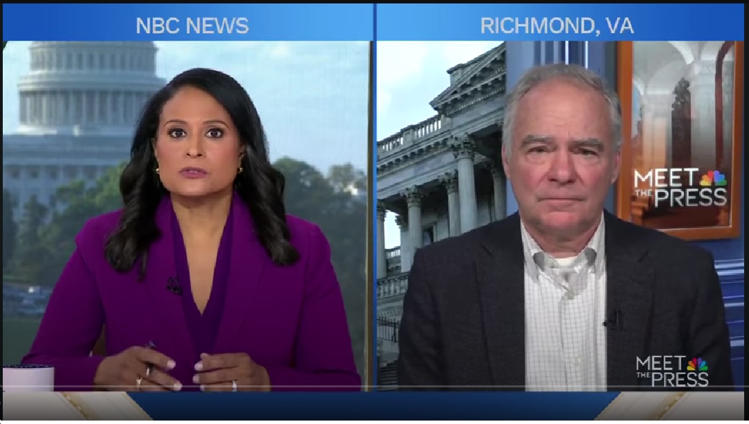 See below for video and a partial transcript of Sen. Tim Kaine’s appearance this morning on Meet the Press (which sucks, by the way…I only watch clips when Virginians are on there). Bolding added, as usual, by me for emphasis.