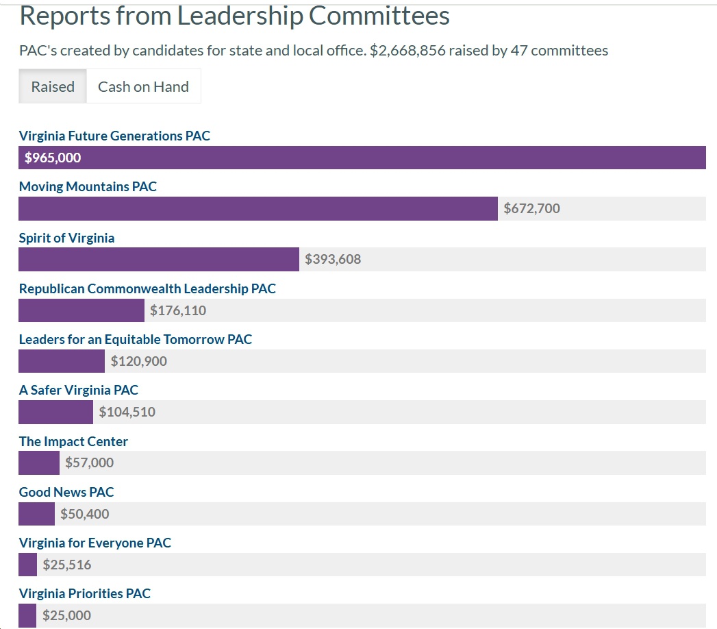 - Winsome Earle-Sears (R): Raised $9.1 million in September, had $1.6 million CoH.