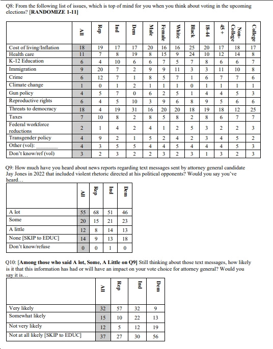 - “Top-of-mind issues for Virginia likely voters include threats to democracy (18%), inflation (18%), healthcare (11%), and immigration (9%).”