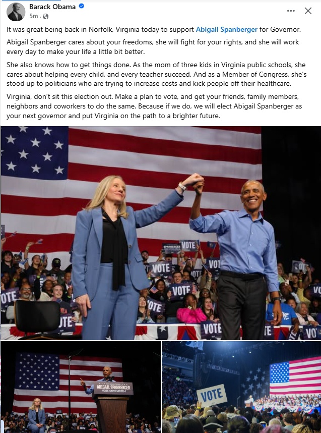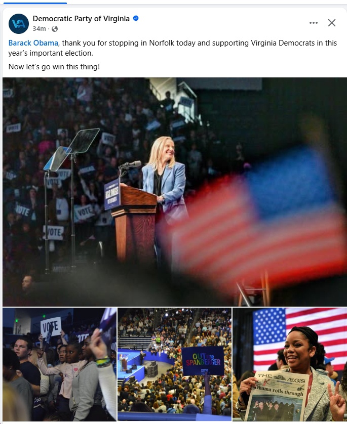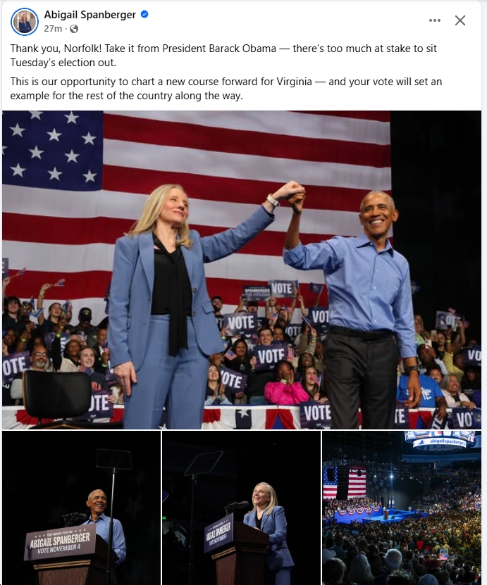 Before introducing the former president, Spanberger made clear that she will be a Governor who will always put the Commonwealth first — a Governor focused on lowering costs for Virginia families, growing Virginia’s economy, protecting Virginians’ fundamental rights, strengthening Virginia’s schools, and delivering for all Virginia families.