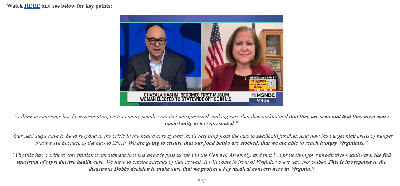 ICYMI: Lieutenant Governor-elect Ghazala Hashmi Joins MSNBC to Reflect on Historic Campaign and Plans to Strengthen Virginia