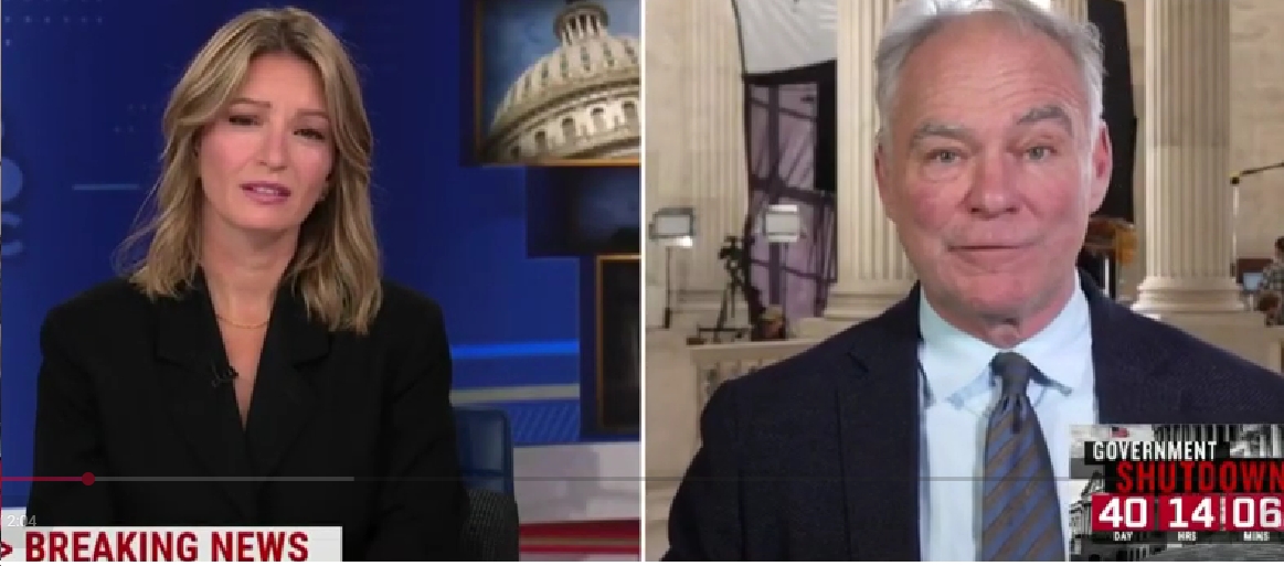 Sen. Tim Kaine: “Can I just say, ‘ripping the party apart?’ I think you’re over dramatizing this. I mean, I know the news business is to try to make everything like the