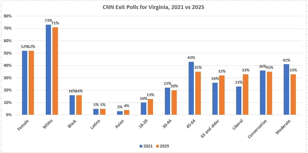 Per CNN’s exit polls of Virginia in 2021 and 2025: