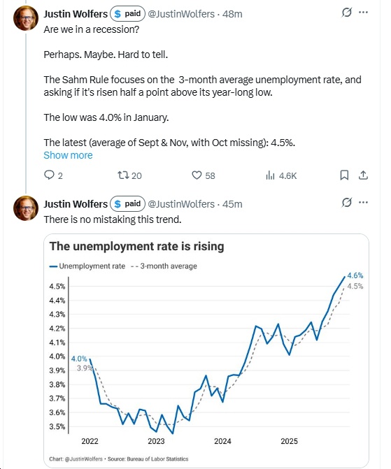 • “The US economy is in a hiring recession. Almost no jobs have been added since April. Wage gains are slowing.”
