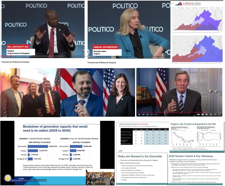- What will the General Assembly do exactly to fulfill Abigail Spanberger’s main campaign promise of addressing affordability in Virginia? Yet again quoting Ivy Main: “If Virginia’s election last month was more than an unleashing of anti-Trump sentiment (and it definitely was that), it was about affordability. Governor-elect Abigail Spanberger made the cost of living the focus of her campaign, frequently mentioning high energy bills. House Democrats, whose majority has been boosted by the addition of 13 new members of their party, are also expected to focus on these bread-and-butter issues.” The question is, what specifically can (and will) the new Democratic “trifecta” do about this challenging issue? On energy costs, Governor-elect Spanberger has specifically mentioned “maximizing the use of energy efficiency measures,” which is VERY smart, as energy efficiency provides by far the biggest “bang for the buck” when it comes to energy, as it’s energy you never have to produce in the first place. Also, could we see bills passed to address housing affordability in Virginia, mostly – in Spanberger’s opinion – by promoting policies that encourage increased housing supply overall, and affordable housing more specifically? How about on health care costs? In Abigail Spanberger’s “Affordable Virginia Plan,” she talks about measures like “cracking down on the middlemen – pharmacy benefit managers (PBMs) – responsible for inflating the cost of prescription drugs”; “hold[ing] large pharmaceutical companies accountable through strict enforcement of price transparency laws and enforce penalties when there is evidence of price gouging”; “improv[ing] hospital price transparency”; “hold[ing] scammers accountable for ripping off Virginians”; etc. So how much of Spanberger’s “Affordable Virginia Plan” will pass the General Assembly and become law next year?