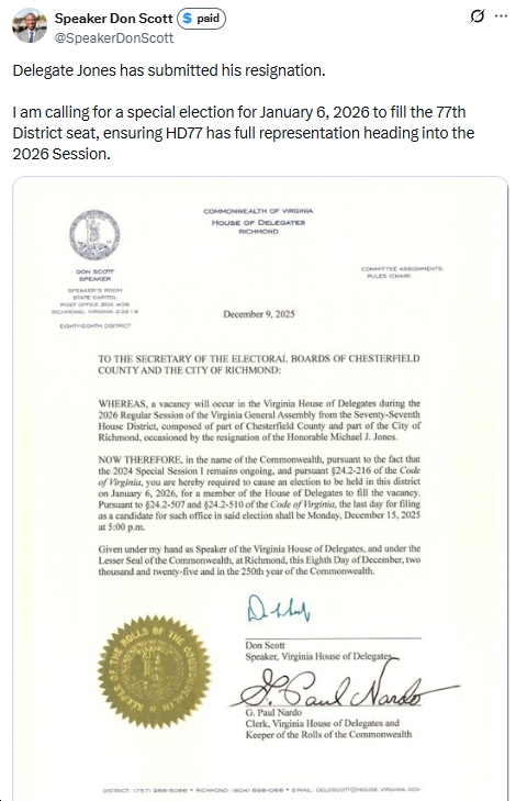 ![Video: VA Speaker Don Scott Says “Republicans want [redistricting] to be decided by the courts too, and not by the voters, after that shellacking they took in November.”](https://bluevirginia.us/wp-content/uploads/2025/12/donscottpolitico-100x75.jpg)