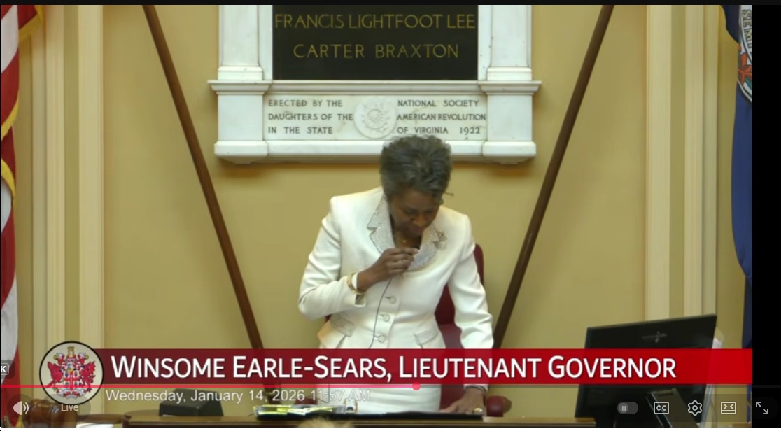Winsome Earle-Sears is still Lt. Governor until Saturday, so continues to preside over the State Senate until then, at which point Ghazala Hashmi will (thankfully!) be sworn in as the next Lt. Governor.