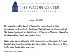 ![CNU Wason Center Poll of Virginia: Trump Approval at Just 34%; “narrow majority support a constitutional [redistricting] amendment”](https://bluevirginia.us/wp-content/uploads/2026/01/wason0128-1-238x178.jpg)