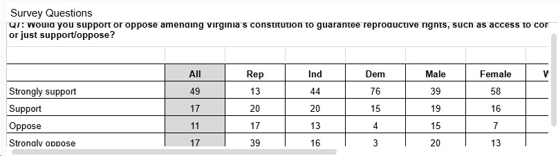 "Virginians Show High Levels of Support for: Amendments to State Constitution on Reproductive Rights, and Felon Re-enfranchisement; Retail Marijuana Sale; Limits on Data Centers; $15 per hour Minimum Wage; Paid Sick Leave; Paid Family and Medical Leave"