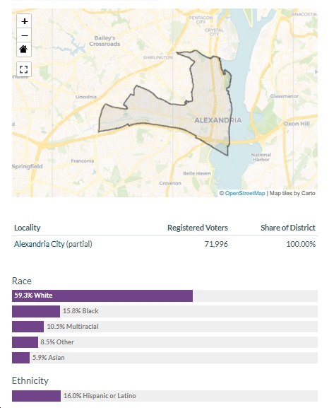 From VPAP, here’s a map of the district with race/ethnicity information.