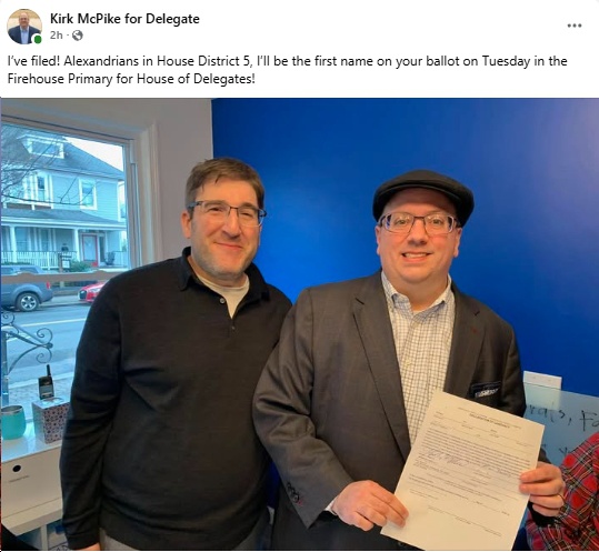 According to the Alexandria Democrats, there are four Democratic candidates for this seat – former Alexandria City School Board member, “award-winning communications strategist, author, and policy leader” Eileen Cassidy Rivera; Alexandria City Council member “since 2022, where he has been a leading advocate for housing construction, climate change action, and sound budgetary policies,” Kirk McPike; criminal defense attorney Chris Leibig; and Greg Darrall (don’t know anything about him). I’ll update this post with information as I see it. Also, check out the interviews Sunday late afternoon by The Alexandria Brief, starting at 4:30 pm with Kirk McPike, followed by Eileen Cassidy Rivera at 5:30 pm and Chris Leibig at 6:30 pm.
