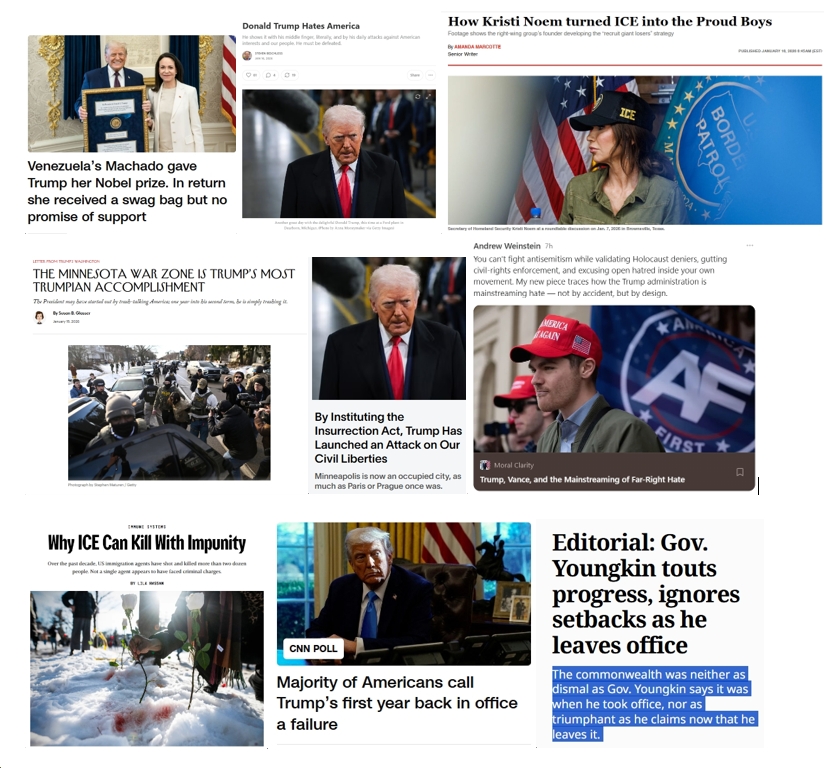 - Editorial: Gov. Youngkin touts progress, ignores setbacks as he leaves office (“The commonwealth was neither as dismal as Gov. Youngkin says it was when he took office, nor as triumphant as he claims now that he leaves it.”)