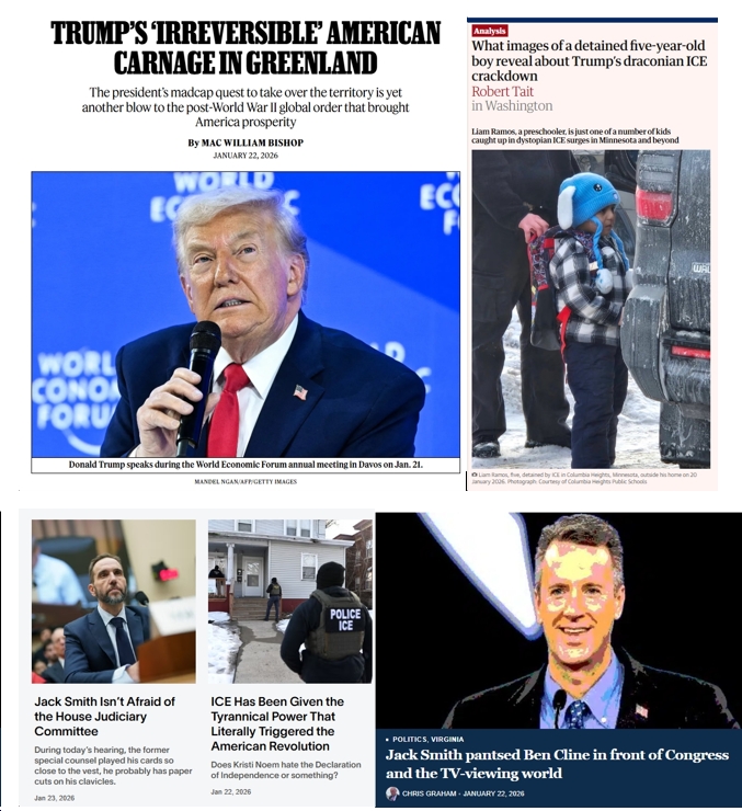 - Trump’s Greenland ‘Deal’ Appears To Exist Only In His Head (“Denmark says it has no intention of ceding any territory on the Arctic island, raising the question of what he achieved beyond sowing chaos and bad blood.”)