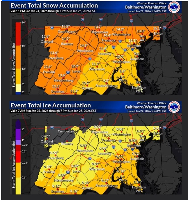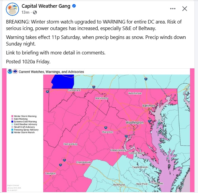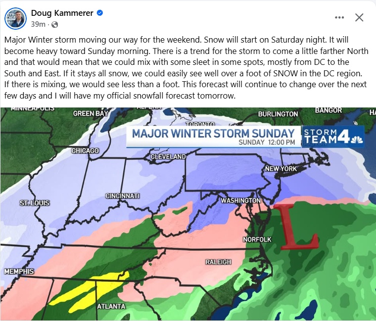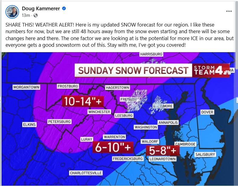 P.S. Since this is a political website, it’s worth mentioning that this storm could make it very difficult for legislators to get back and forth from Richmond early next week. Also, this will be the first big weather-related test for Gov. Spanberger’s administration…