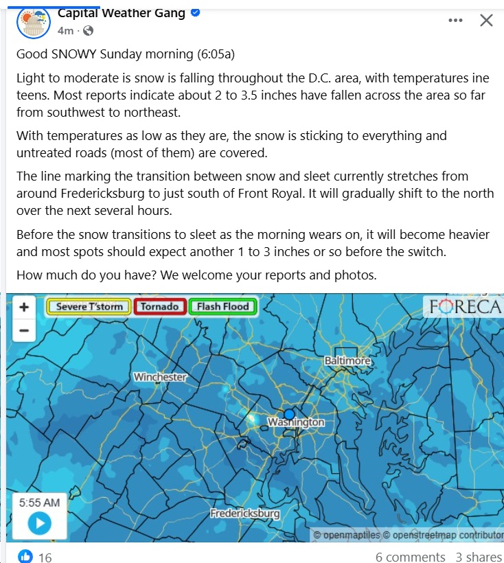 UPDATE 6 Sunday from the Capital Weather Gang: