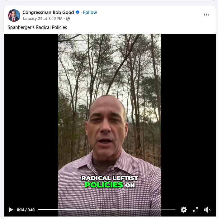 - Former Rep. Bob Good (R-VA05), who’s about as far right as you can get, railing against “Spanberger’s radical policies” and “radical leftist policies.”