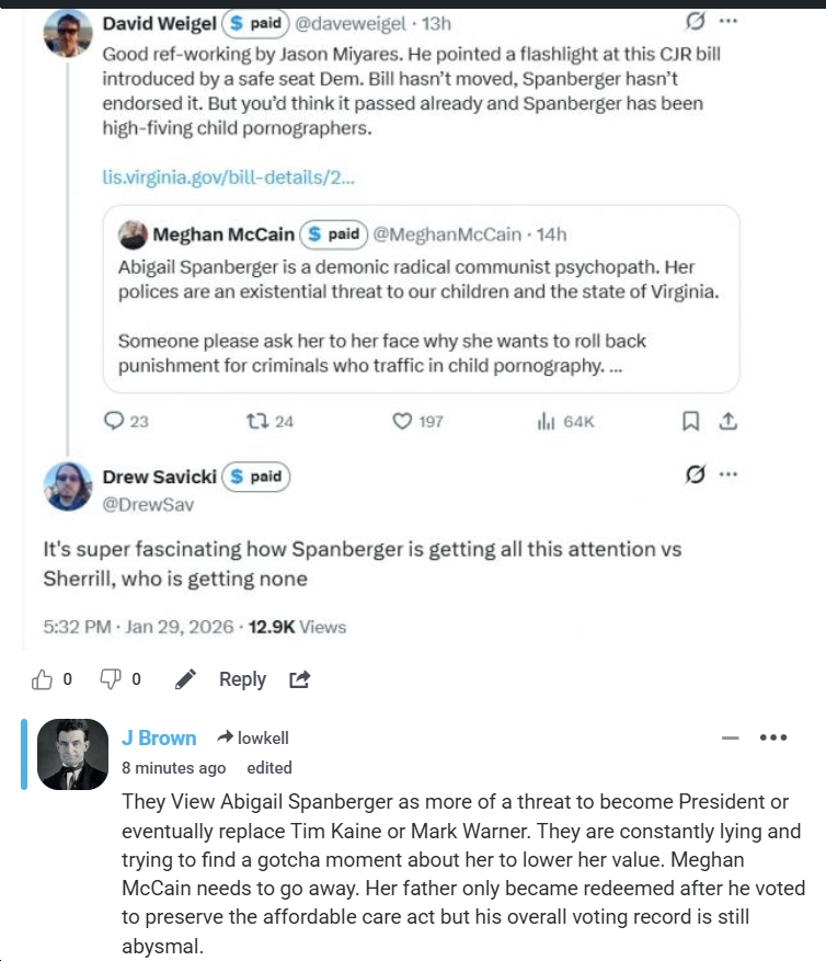 P.S. I’ll add more examples of right wingers’ unhinged responses to Gov. Spanberger as I see them.