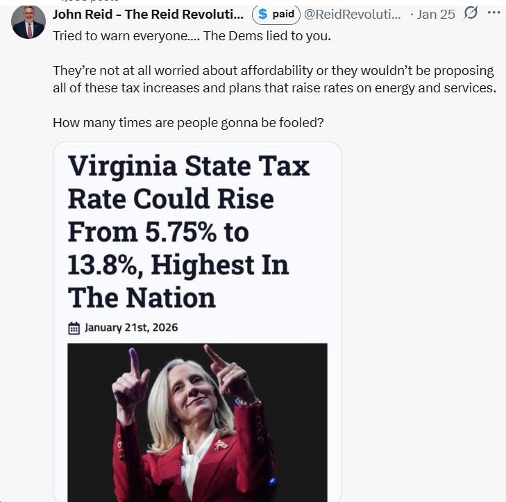 - 2025 VA GOP Lt. Gov. nominee John Reid over and over again claiming, falsely, that Spanberger/Hashmi/etc. are radicals, socialists, communists, you name it.
