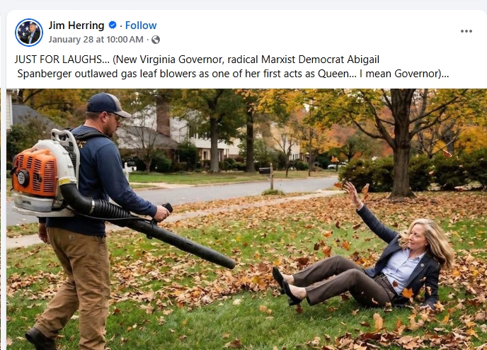 - Random right-wing attacks on Spanberger for various bills that have been introduced in the General Assembly, but which Spanberger hasn’t weighed in on, let alone signed into law. And yet…of course, they’re attacking Spanberger for those bills (on leaf blowers, marginal tax rates for the wealthiest Virginians, whatever), demonstrating that they have no understanding of the legislative process. Hell, they even argue that Spanberger should put out statements denouncing bills as they are introduced, even though Glenn Youngkin never did that the past four years with hundreds of far-right-extremist bills, nor does ANY governor routinely do that.