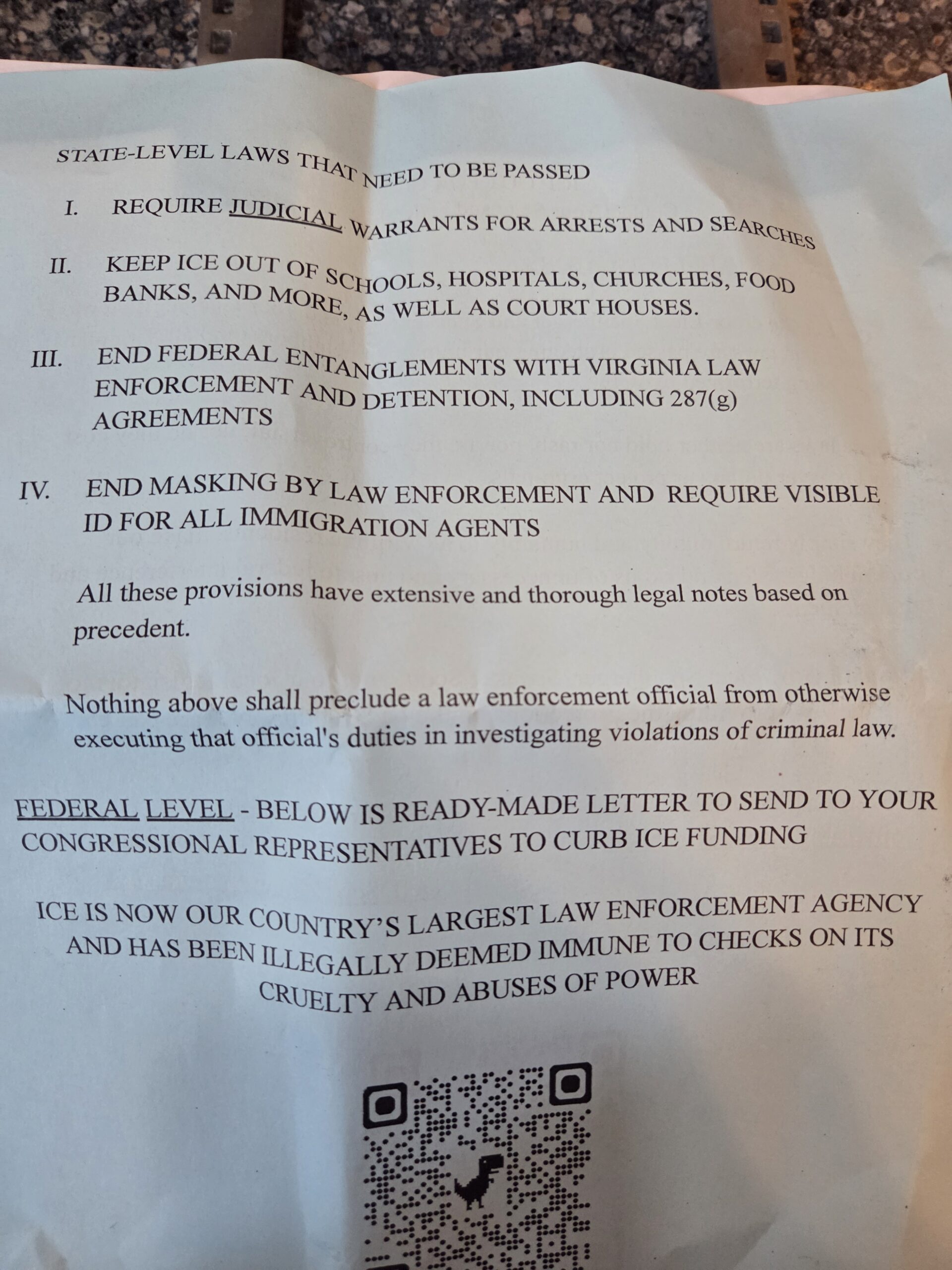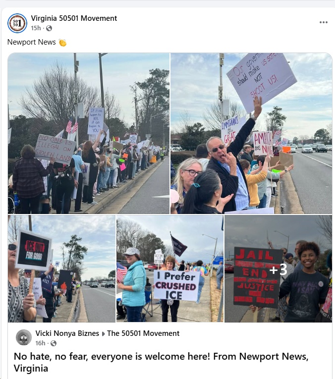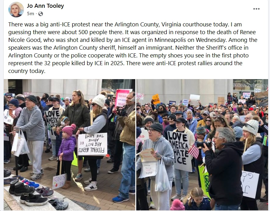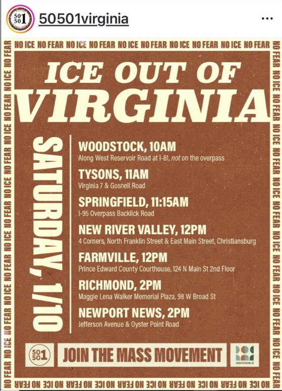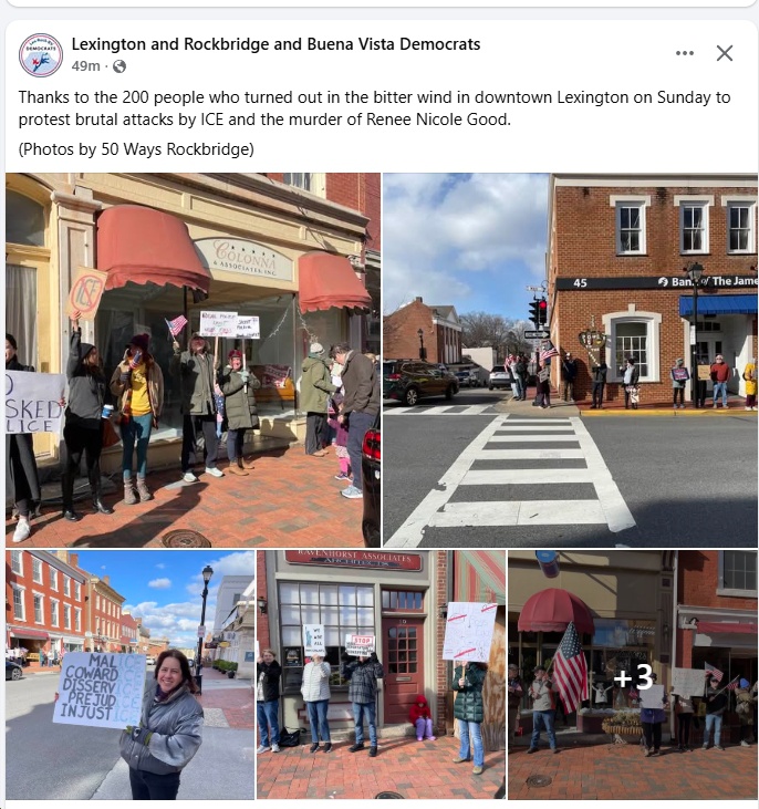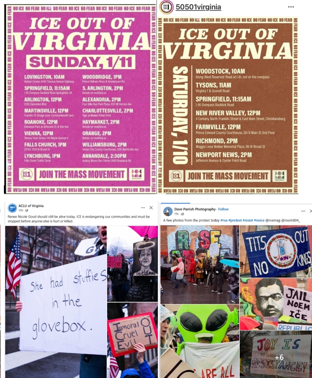 See below for photos from this weekend’s protests around Virginia against ICE, in honor of Renee Good, etc. I’ll update this post as I see more photos, video, etc.