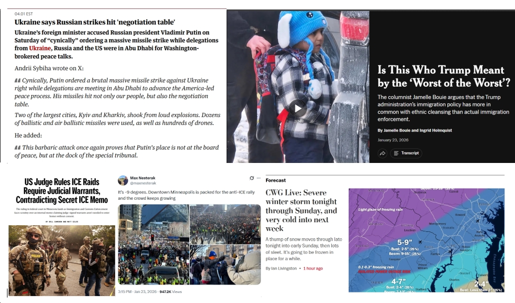 Here are a few international, national and Virginia news headlines, political and otherwise, for Saturday, January 24.