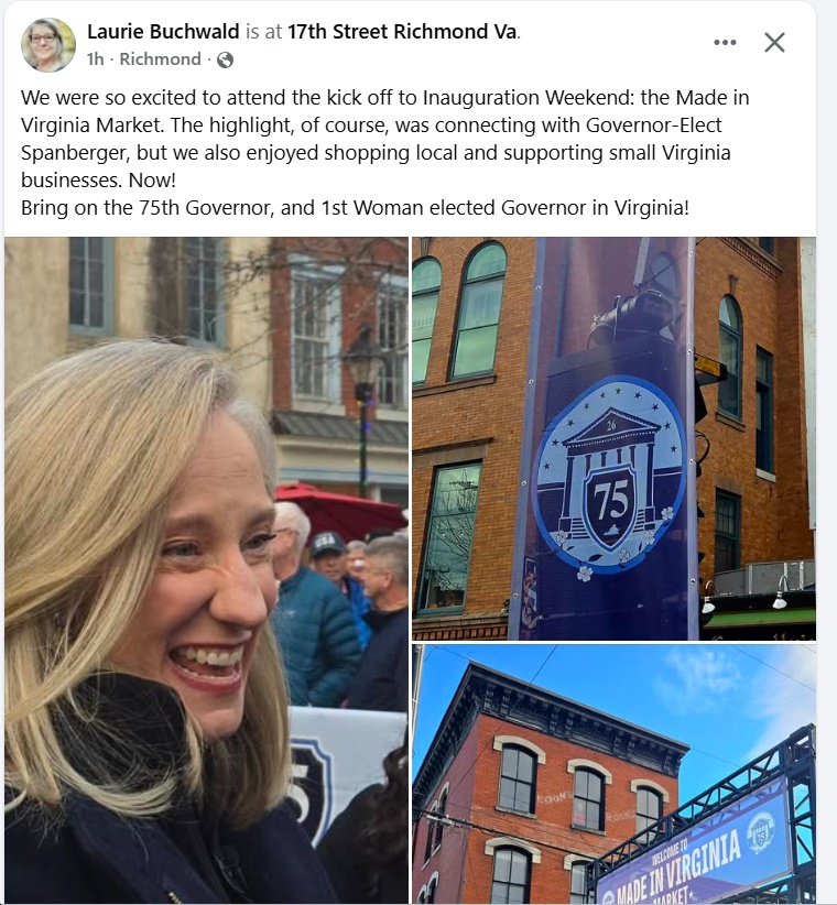 So, bottom line, I’d say I’m feeling a mixture of optimism along with a full realization of the serious challenges we’re facing. But for today, I’m just going to celebrate the fact that the past four years of bad governance by Youngkin, Earle-Sears and Miyares are ending, and that a new era is beginning. Good luck to Spanberger, Hashmi and Jones in their new jobs, and congratulations!