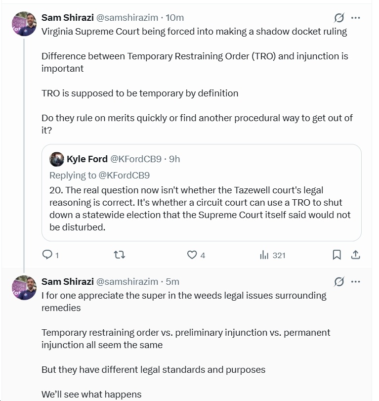 1. I’ve now written two threads on the Tazewell redistricting litigation. I didn’t expect to write a third. But today, the same court entered a temporary restraining order that goes further than anything before. Here’s what happened and why it matters.