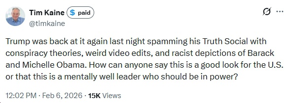 “Republican leaders across the country have already denounced this racist post. Republican leaders in Virginia have not. This should not require a public statement, but here we are. What the President reposted was racist. Deleting it hours later without an apology does not erase the harm. I’m calling on Virginia General Assembly Republicans to simply do what’s right and denounce this garbage.” |