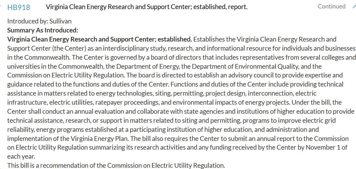 - Clean Energy Innovation Bank (HB1444-Lopez and SB225-Surovell)