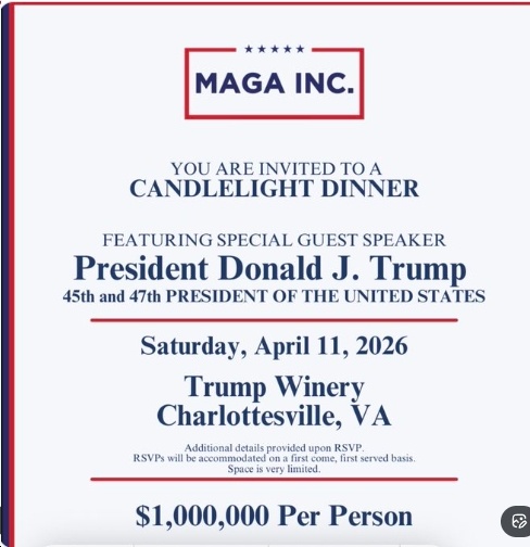 P.P.S. Also, a $1 MILLION-per-person “candlelight dinner” with Donald Trump tonight in Charlottesville…
