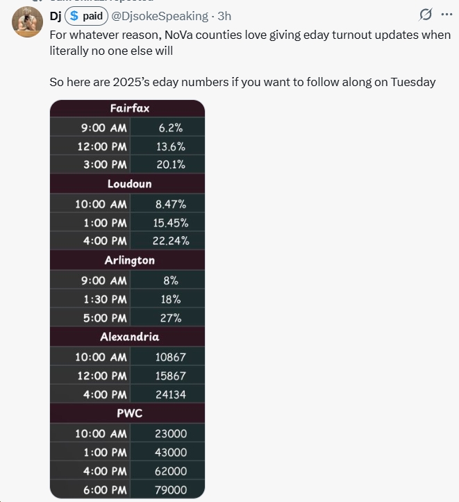 - With the Final Day of Early Voting TODAY and the Election on Tuesday, Sam Shirazi Looks at “Shy Yes Voters vs. Skeptical No Independents” (“I don’t know if the Republicans’ strategy of making this a referendum on Spanberger necessarily is going to work”)