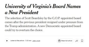 UVA’s Republican-Controlled Board Votes to Appoint New President Weeks Before Abigail...