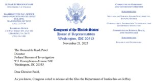 In Letter to FBI Director Kash Patel, Rep. Suhas Subramanyam (D-VA10)...