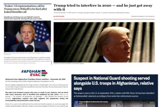 Thanksgiving Day News: “US representatives call for Trump envoy Witkoff to be fired after leaked Kremlin call”; “Trump tried...
