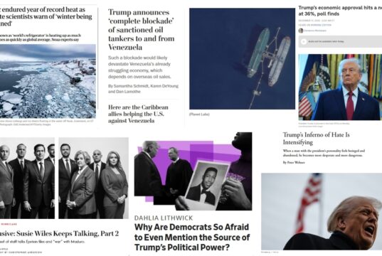 Wednesday News: “Arctic endured year of record heat”; “Trump orders blockade of ‘sanctioned oil tankers’ into Venezuela”; “Trump’s Inferno...