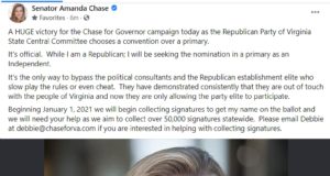 BREAKING: After VA GOP Opts for a 2021 Convention, Amanda Chase...