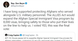 U.S. House Votes 407-16 To Protect Protect Afghan Allies Who Risked...